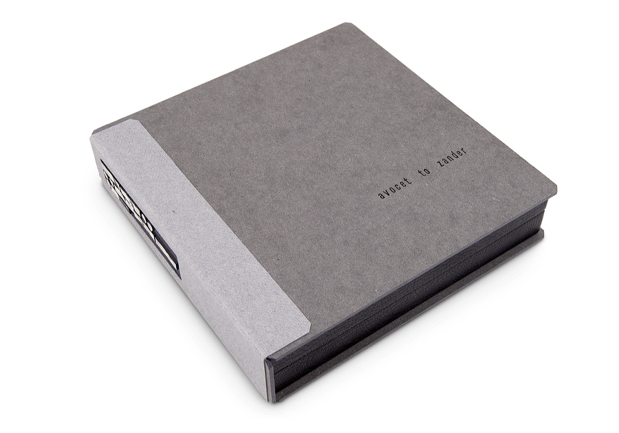 Inner laminate blind blocked with avocet and zander designs and onlaid with blue-grey goatskin. |