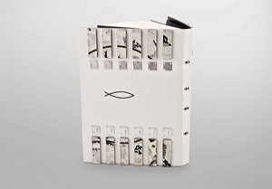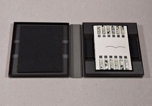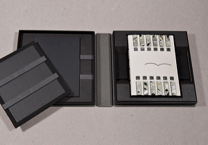 Drop-back box with cryptic 'lacunose' design on spine. |