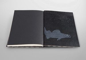 Recessed stylized 'bird' and 'fish' onlays of dark grey goatskin. |