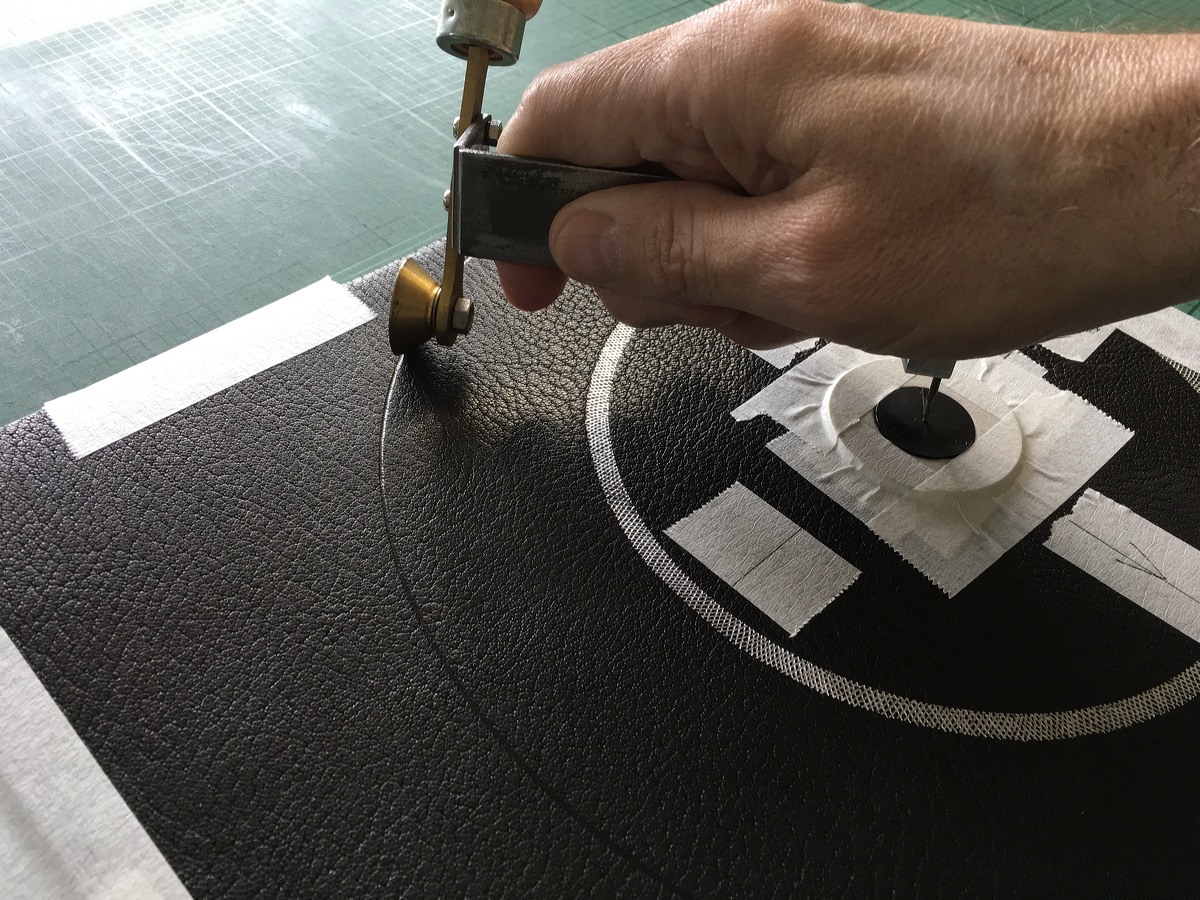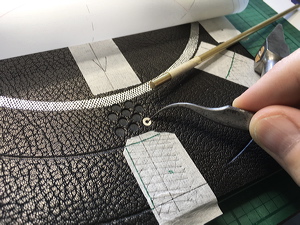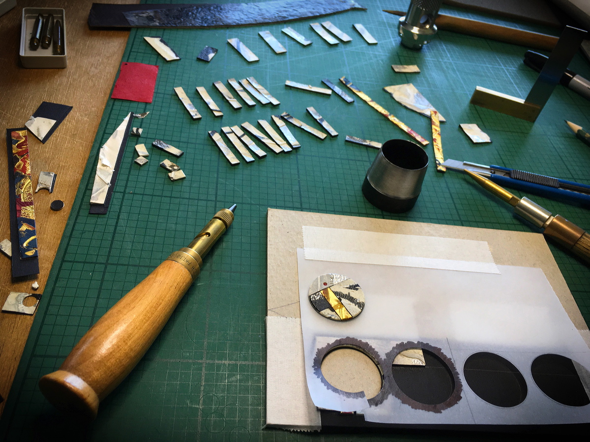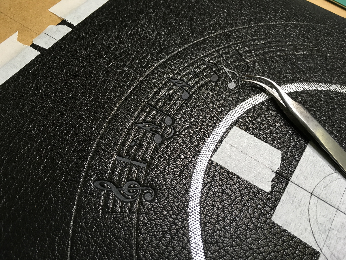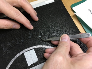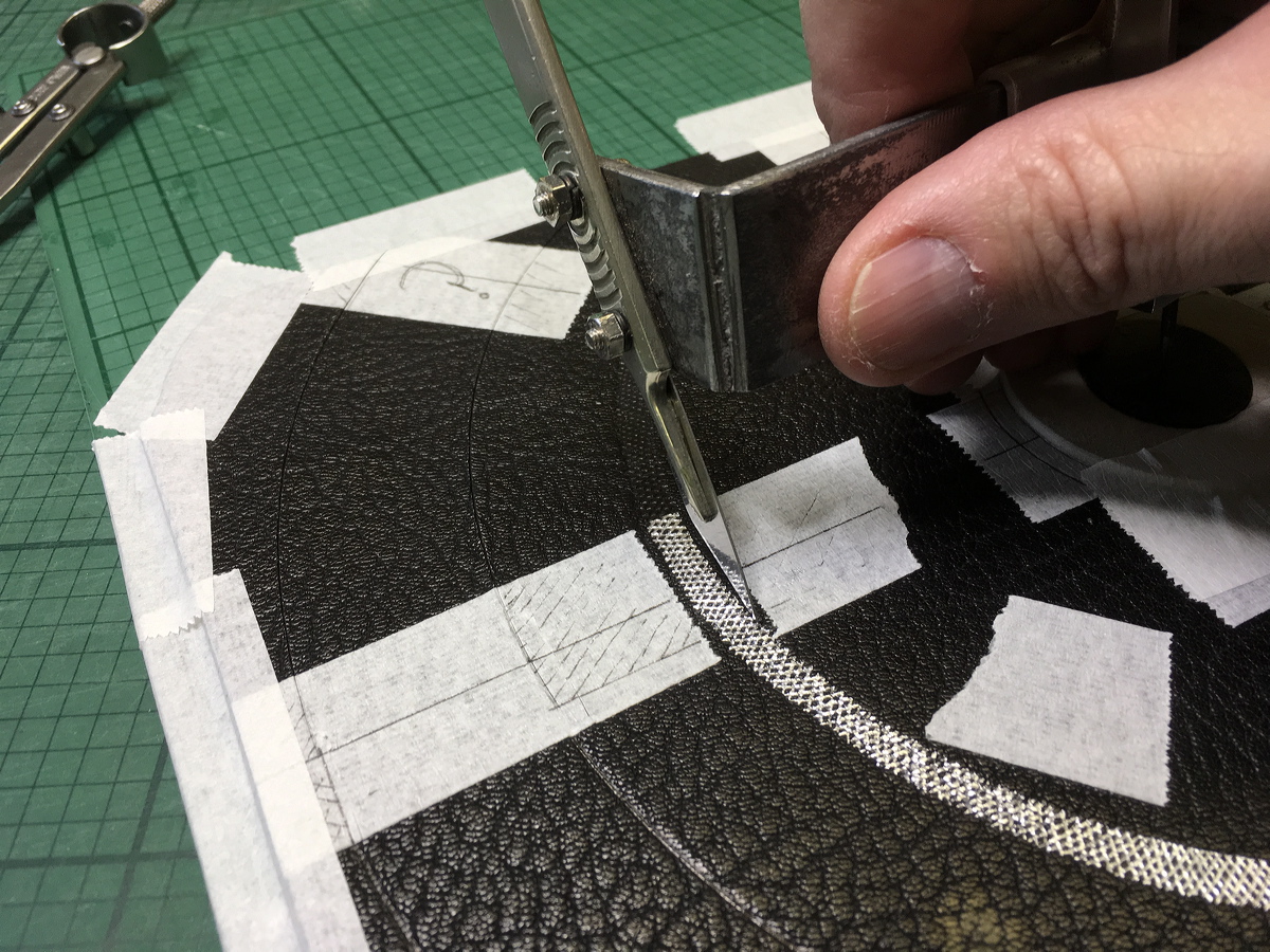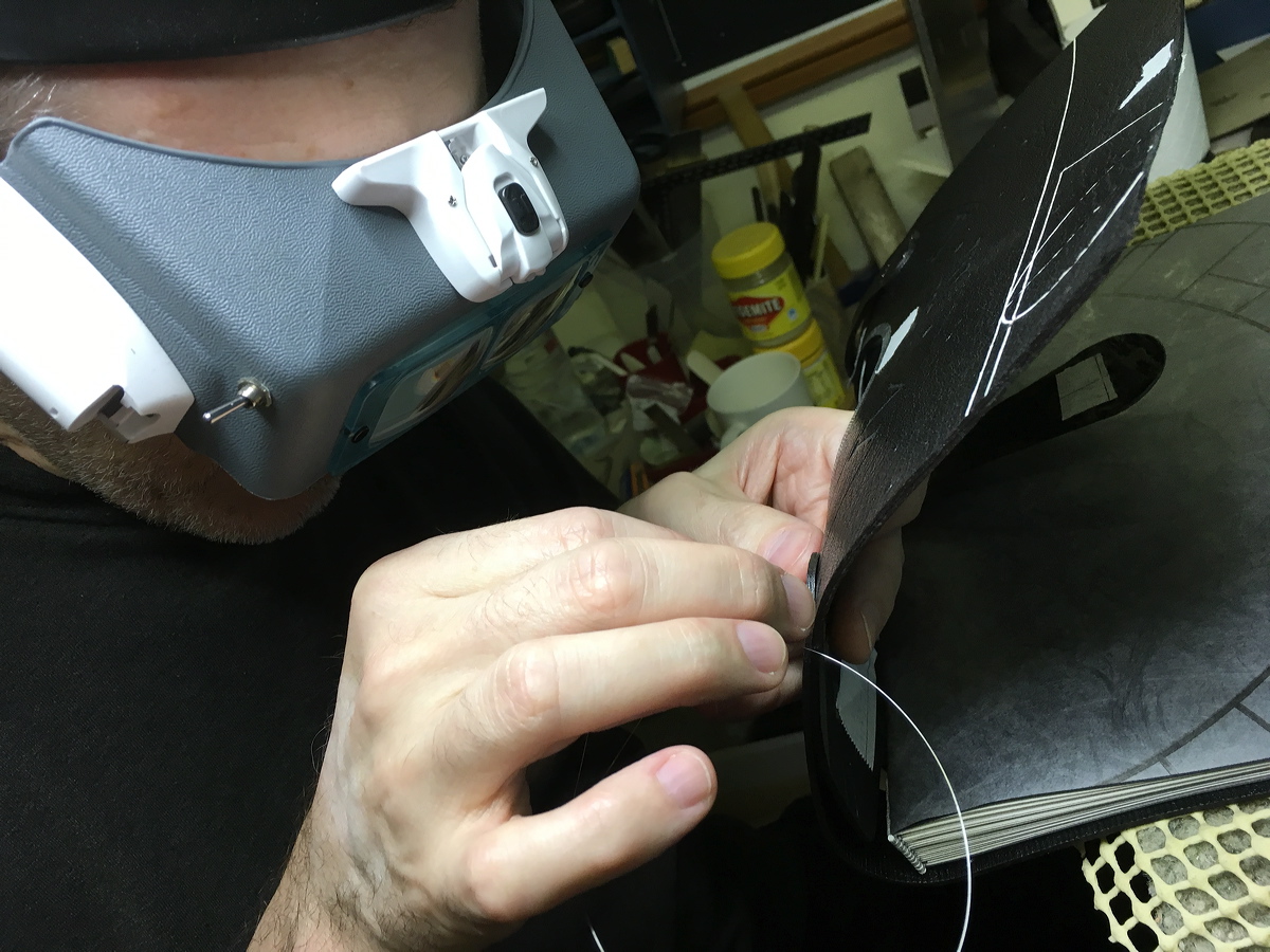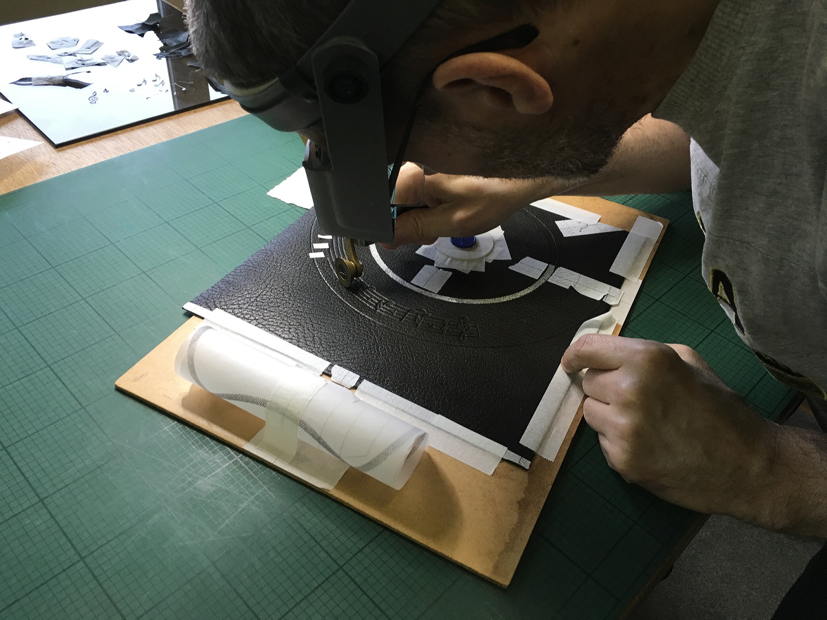 Cutting very thin leather onlays. |