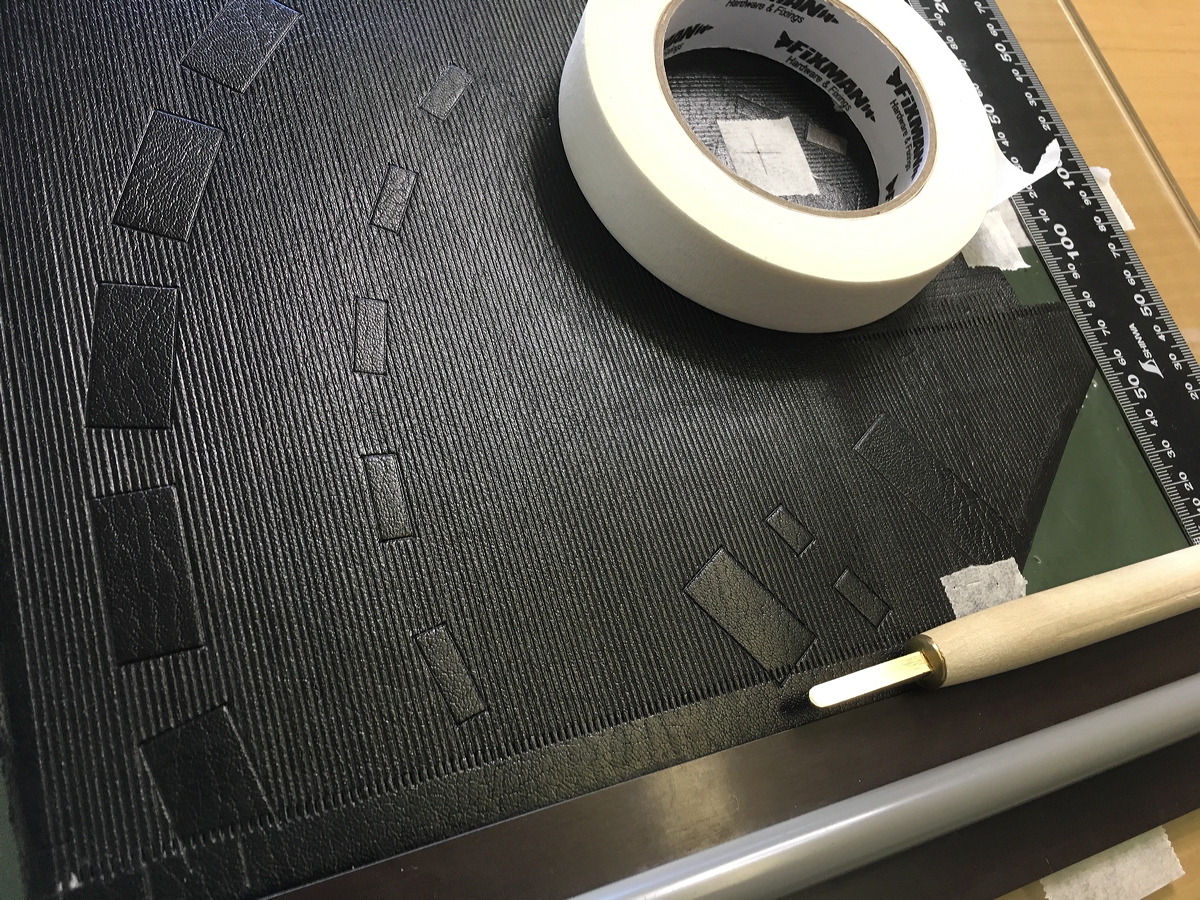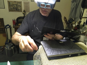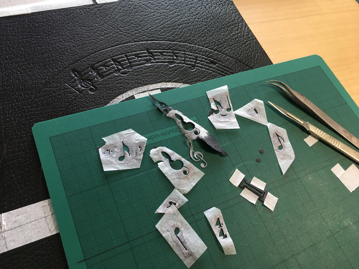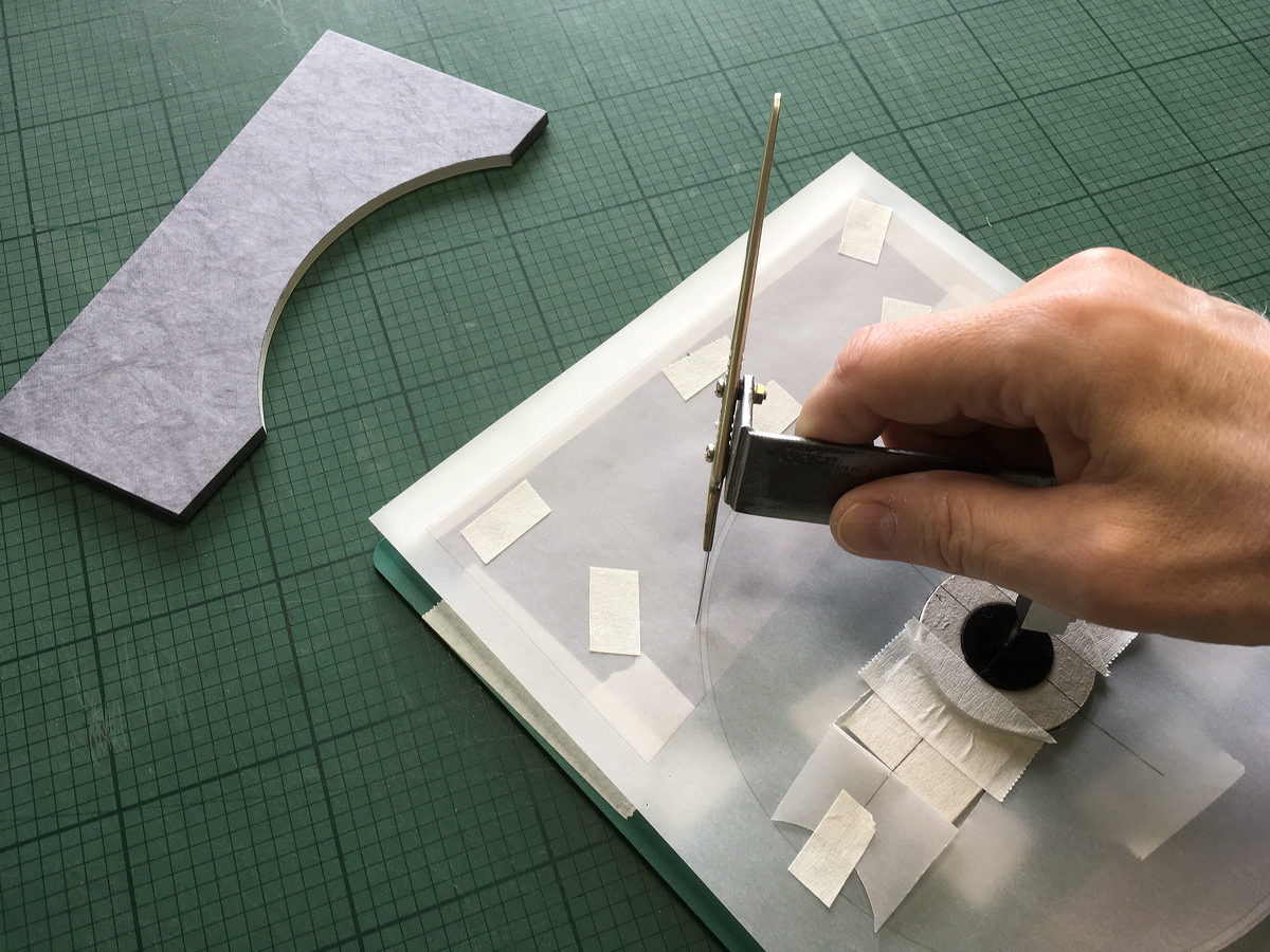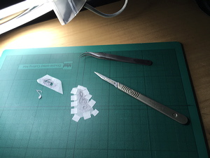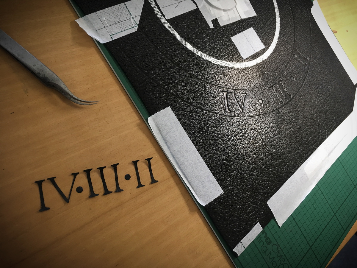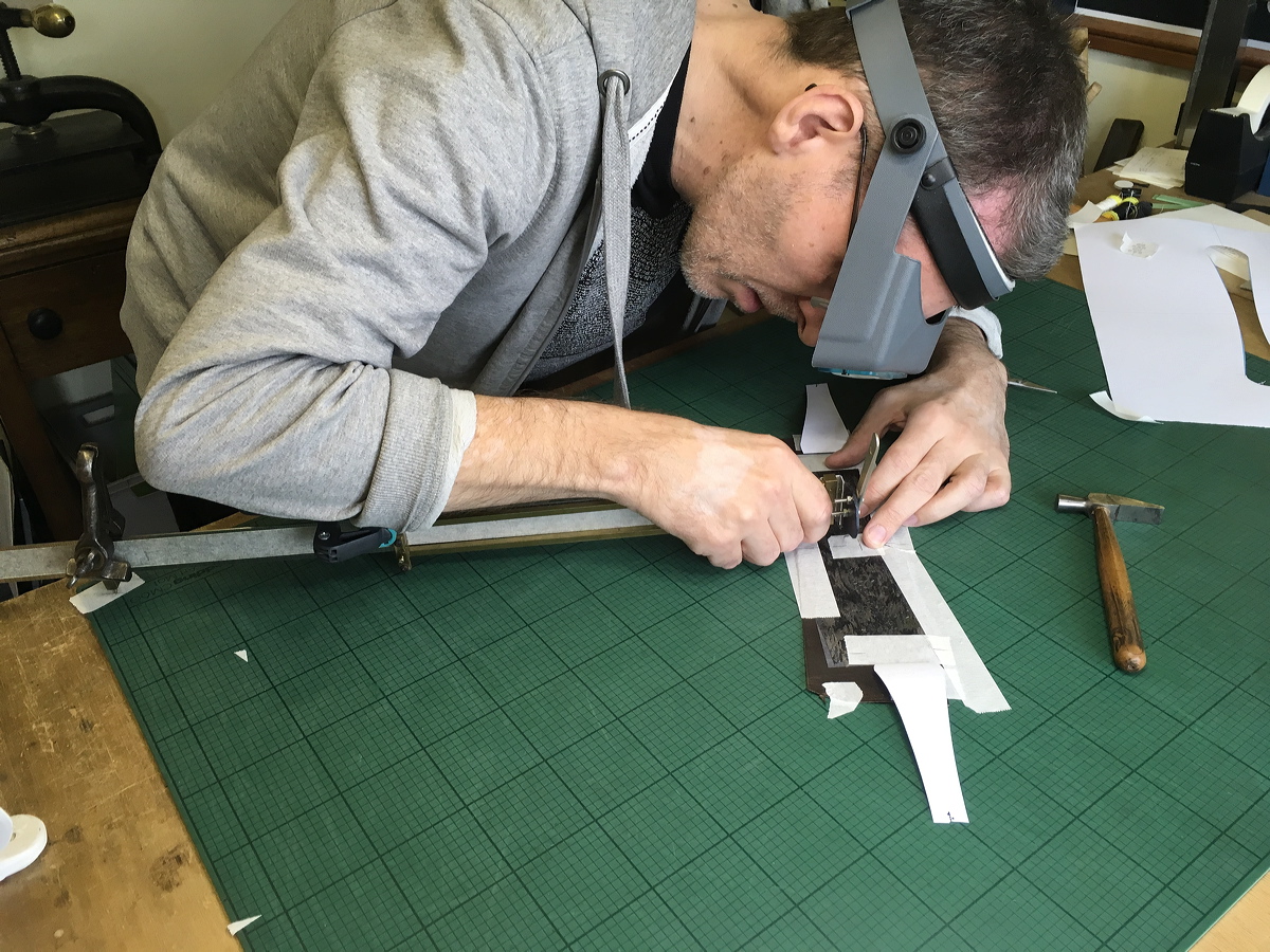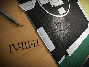 Cutting very thin leather onlays. |