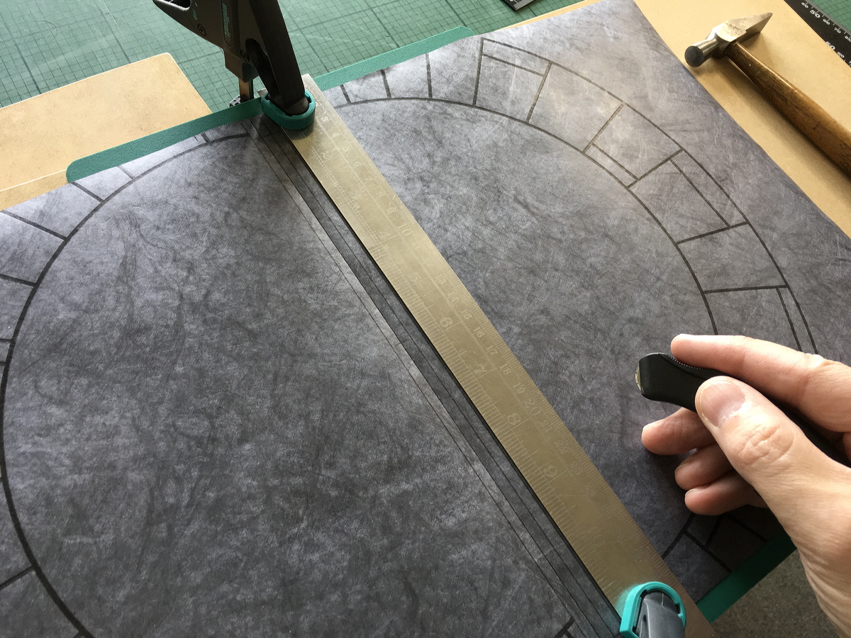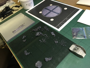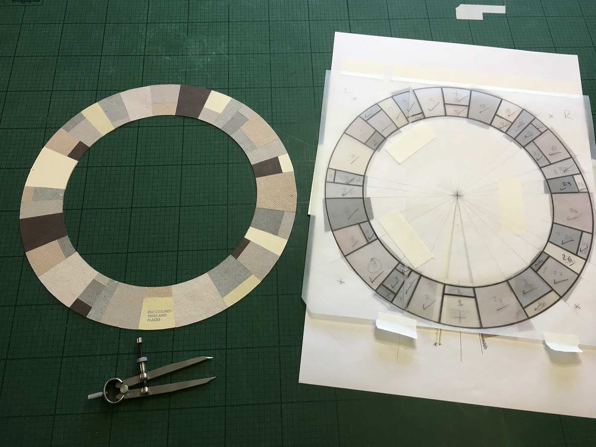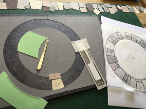 Assembling Windmill paper fragments for stonework design. |