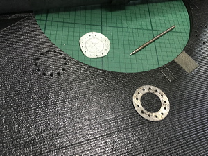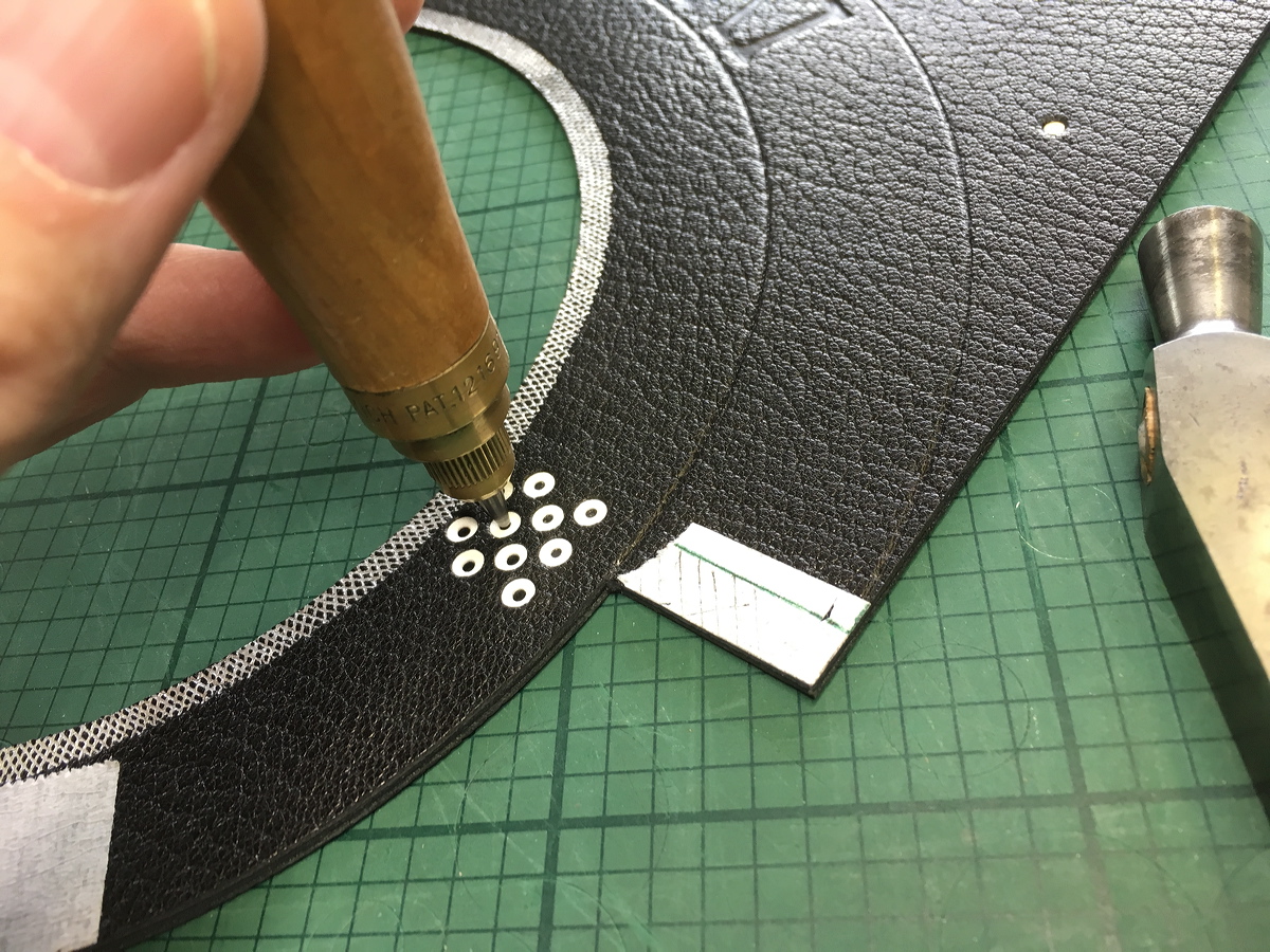 Punching the sewing holes through the inner laminate. |