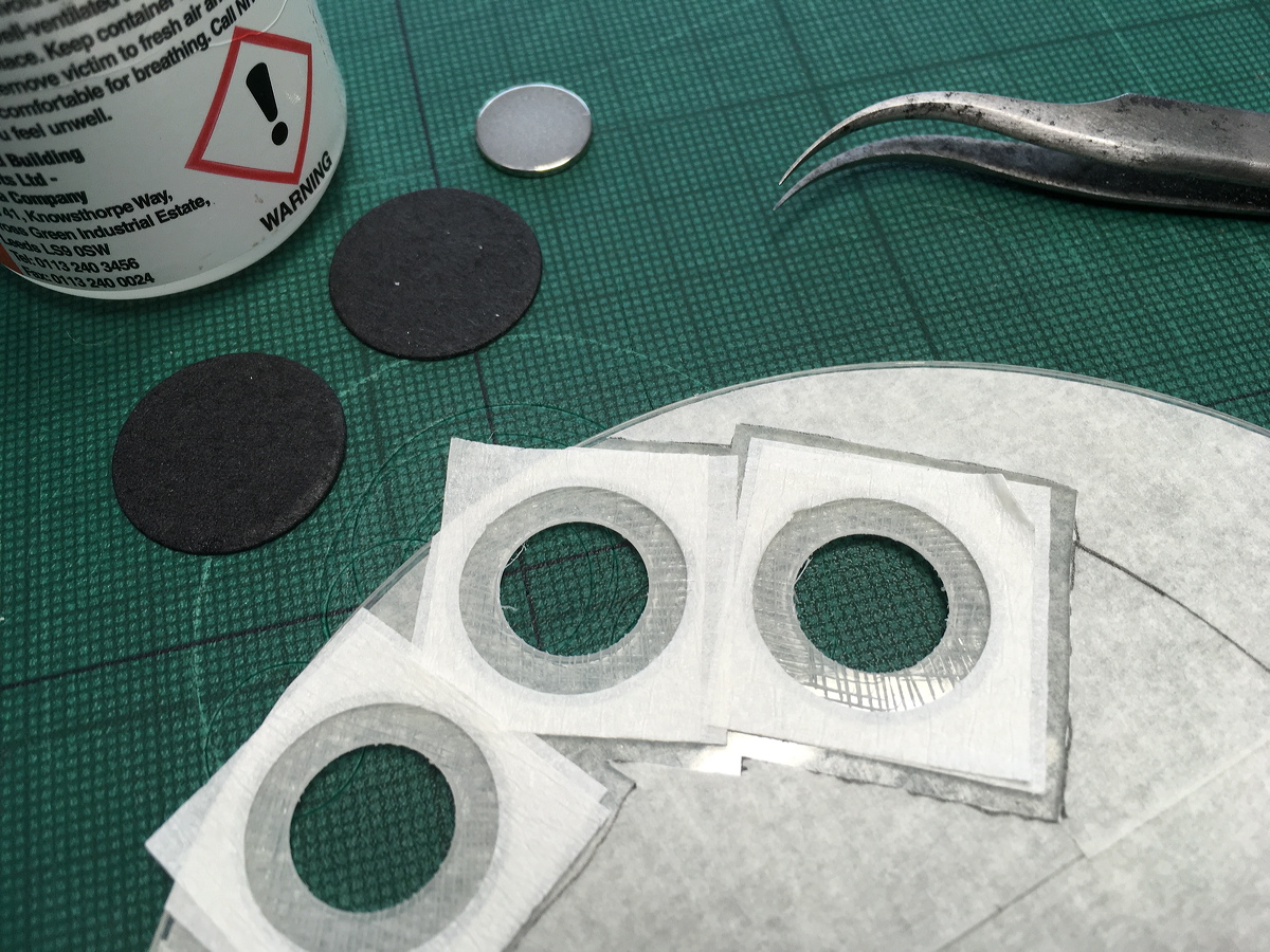 Inserting magnets into the polypropylene stand. |