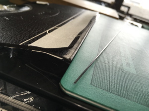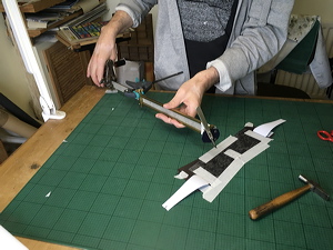 Opening the cover foredges to insert carbon rods for rigidity. |