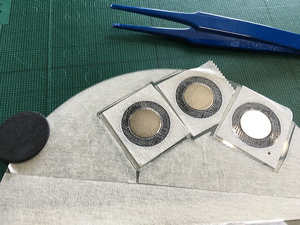 Making the lacunose buttons. |