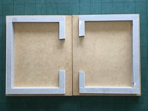 Cutting the Tyvek-covered foamboard box inserts. |